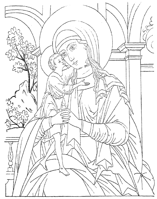 Рис. 55. Образ Б. М. в нижней ц. св. Франциска в Ассизи, письма П. Лоренцетти, над могилою кард. Орсини.
