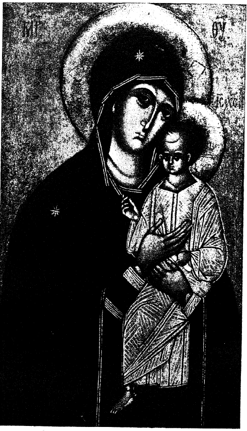 Рис. 26. Снимок иконы Б. М. «Млекопитательница» в Карейской Типикарнице Хиландара на Афоне.