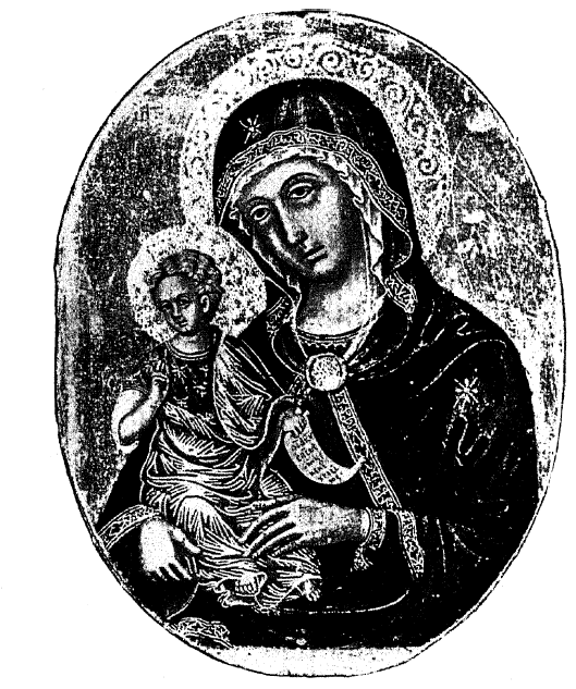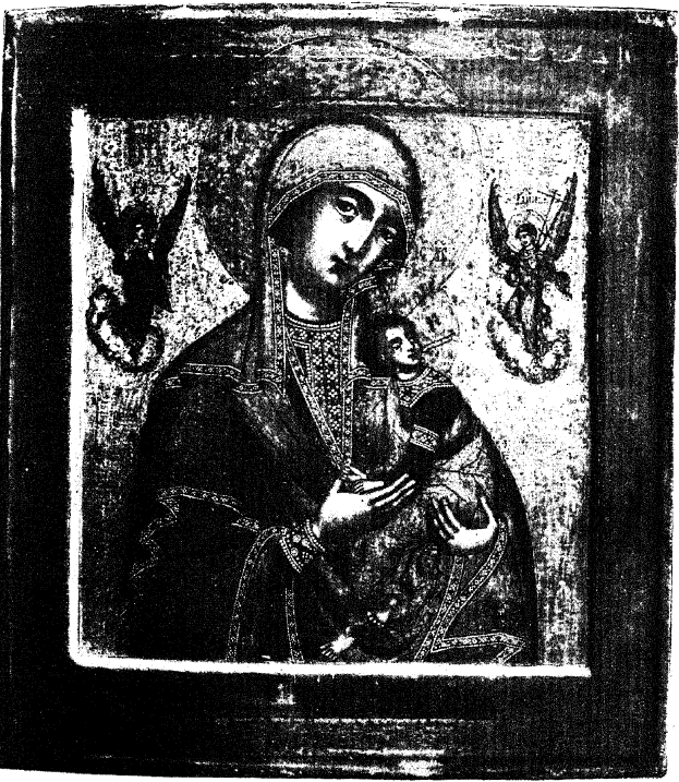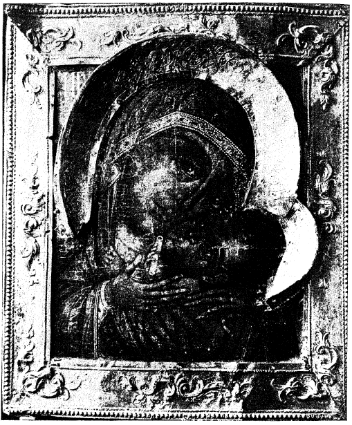 Младенца на шее, как будто, не видно. По своей технике икона, несомненно, греческого письма, но не столь древнего, как о том утверждает сохраненное за нею предание106.
