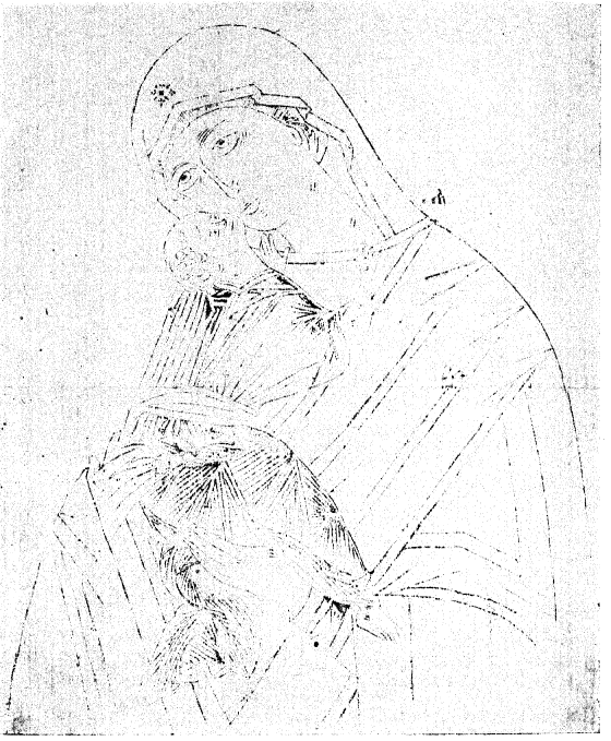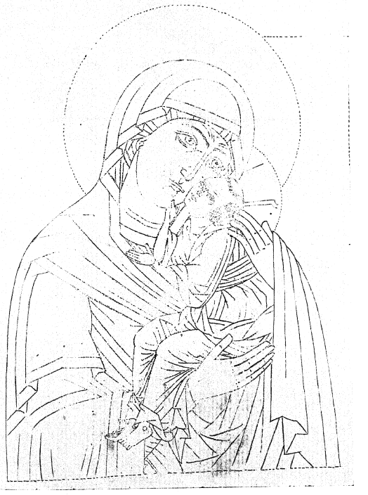 Рис. 122. Прорись иконы Б. М. «Умиления», Новгород, письма XVI в., из собр. бр. Чириковых.