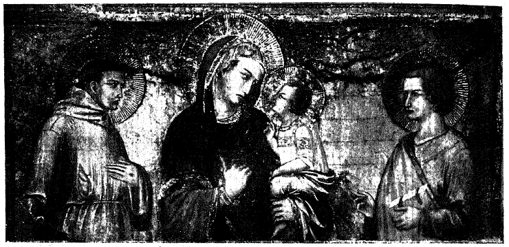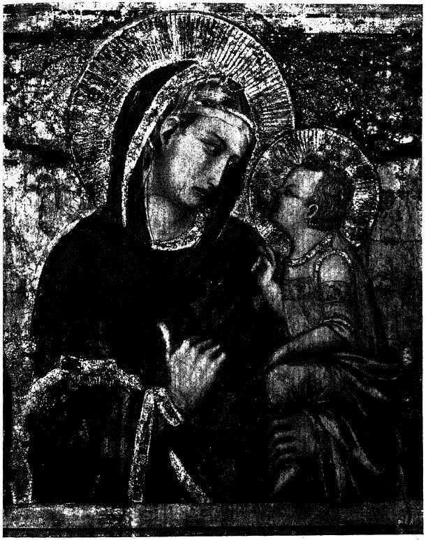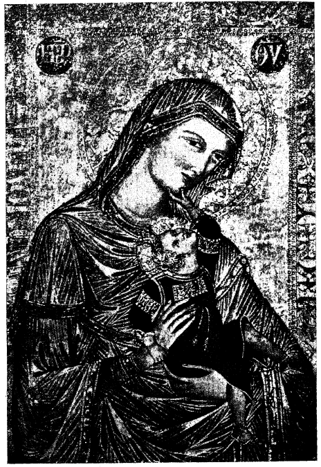 Рис. 97. Образ Б. М. с Младенцем из фрески Пьетро Лоренцетти в нижней ц. Св. Франциска в Ассизи, Алинари 5337а.