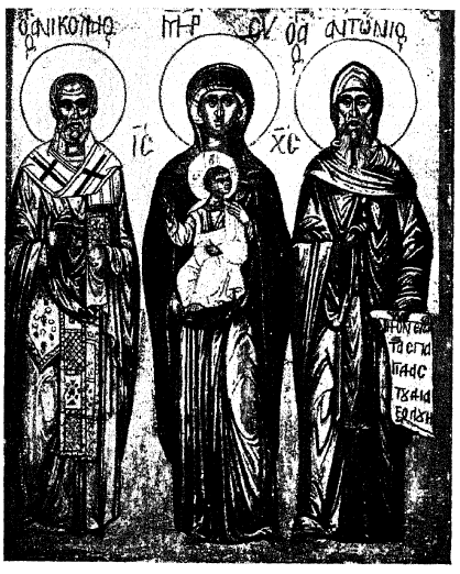 Как распространен был настоящий тип на всем православном Востоке, доказывают несколько икон, идущих из Египта, или с Синая, или доселе находящихся в Синайском монастыре: таковы: 1) икона Б. М. и св. Саввы Освященного в собр. Киевской дух. академии, из колл. преосв. Порфирия115, 2) подобная же икона Богоматери со свв. И. Предтечею,