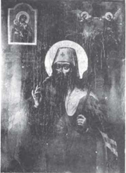 При переписи оказались: икона Богородицы в серебряной резной ризе, 8 икон на празелени, не окладных; книги: апостол, каноник, служебник, житие Иоасафа царевича. Не оказалась по описи книга: следованная псалтирь, «обед духовный», «вечеря духовная», 2 октоиза, псалтирь на виршах, синопсис – дело русской печати, «о чудесах пресв. Богородицы». Остались одежды: 2 кафтана – один теплый на бельем исподе, с серебр. пуговицами, другой – холодный китайчатый с такими же пуговицами, 4 рясы, шапка мужская, и женская, 3 шубки – одна объяренная, червчатая с кружевом, золото с серебром, на лисьих лапках, шубка атласная червчатая на хребтовом бельем мехy, с кружевом – золото с серебром, шубка тафтяная червчятая, на бельем черевьем меxy, шубка кумачная – красная с серебряными пуговицами, с пухом, вершок шит золотом и серебром, шубка китайчатая лазорева цвета, с серебряными пуговицами. Г. 194, № ст. в разр. 33.