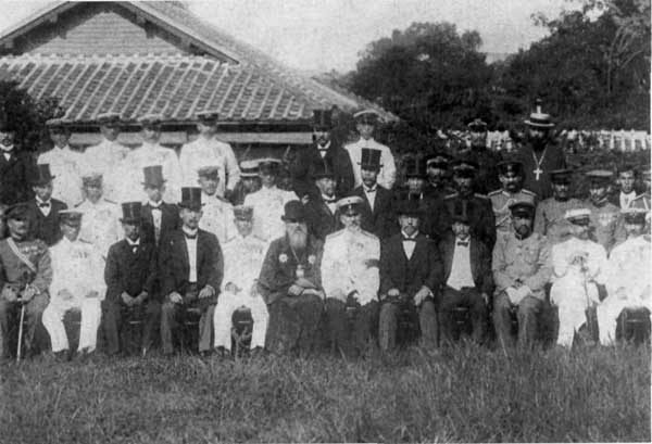 Святитель Николай (в центре первого ряда) с российскими и японскими офицерами.