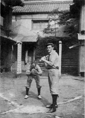 Русские студенты-стажеры, играющие в бейсбол во дворе Токийской семинарии.