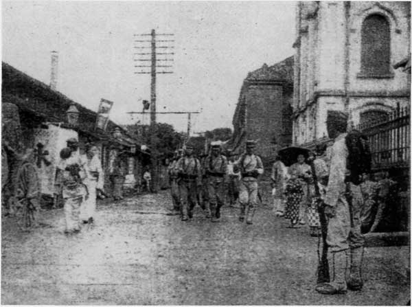 Японские солдаты, охраняющие территорию вокруг Токийской Миссии.