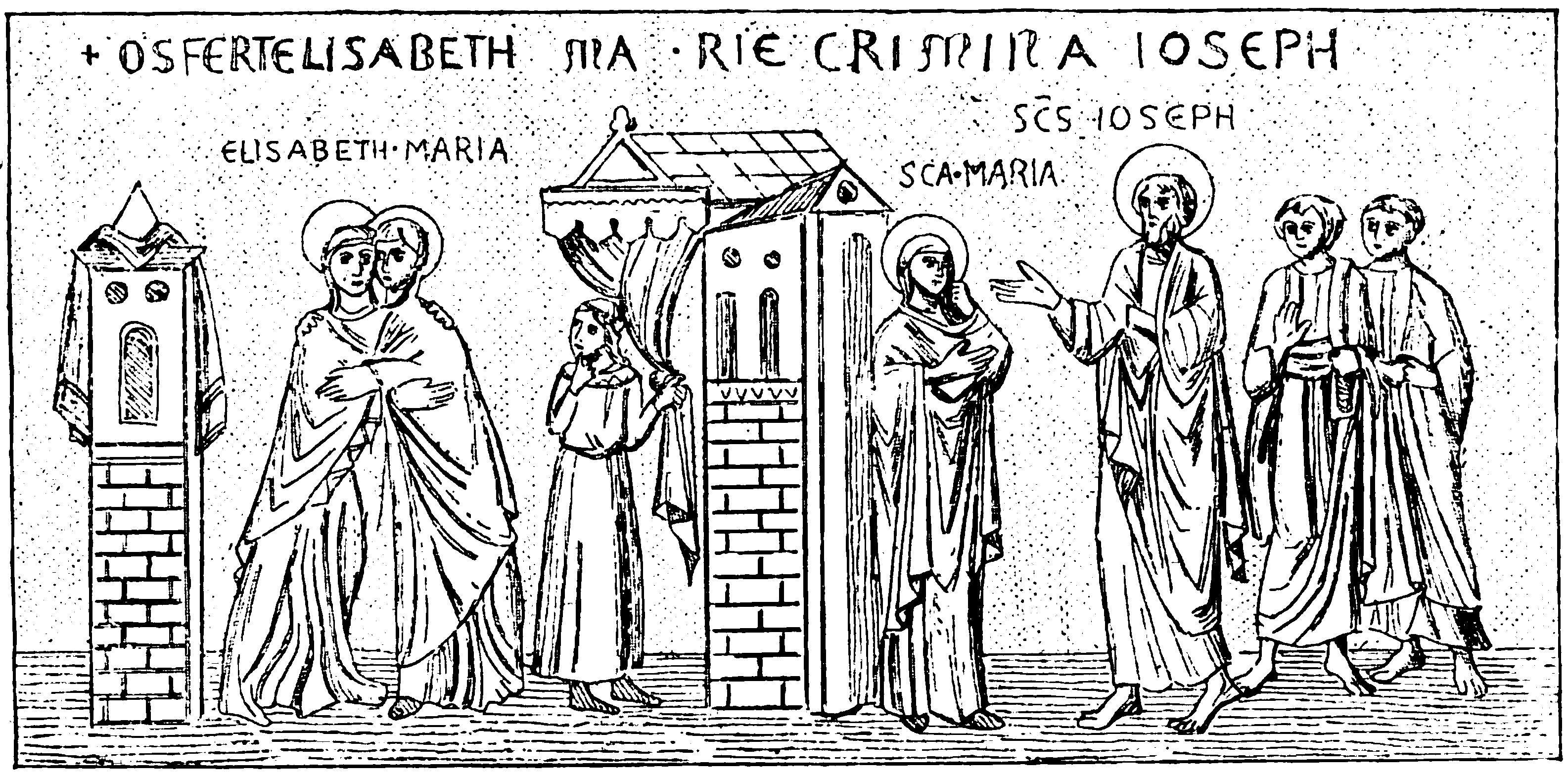 После благовещения в порядке евангельского повествования следуют: встреча Богоматери с прав. Елизаветой, явление ангела Иосифу для разрешения его сомнений и путешествие в Вифлеем.