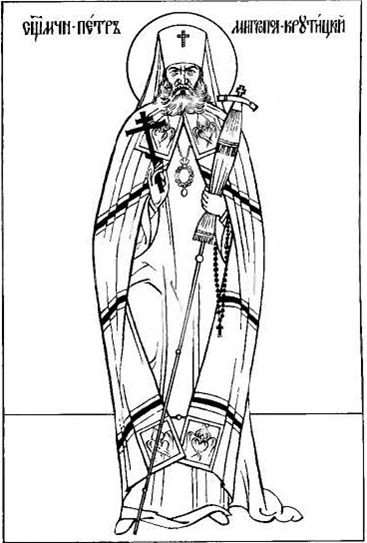 Дух ми́рен и кро́ток стяжа́в,/ тве́рдое упова́ние на милосе́рдие Бо́жие име́я,/ блюсти́тель ве́рный Це́ркве Росси́йския/ и испове́дник Христо́в яви́лся еси́,/ священному́чениче Пе́тре,/ при́сный о нас пред Бо́гом предста́телю/ и моли́твенниче о душа́х на́ших.