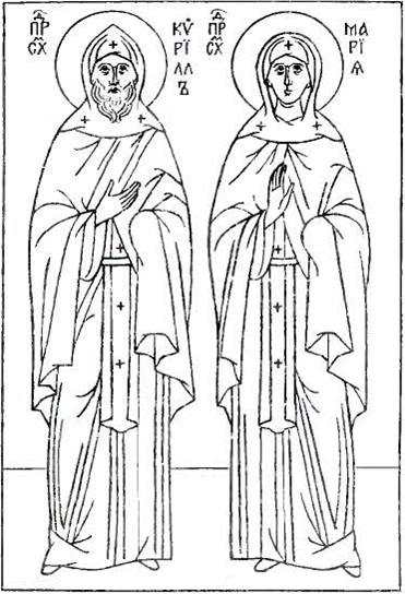 Преподобные Кирилл и Мария жили в древнем Ростовском княжестве. В четырех верстах от Ростова Великого, по преданию, находилось их имение. Боярин Кирилл состоял на службе у ростовских князей. Кирилл и Мария строго следовали церковным правилам и обычаям, прилежали молитве и любили храм Божий. Особенно заботились они о делах милосердия.