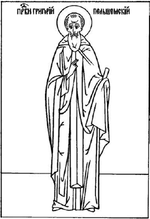 Преподобный Григорий Пельшемский, Вологодский († ок. 1442) прославлен на Соборе 1549 года. Он родился в городе Галиче и происходил из рода дворян Лопотовых. Постригся преподобный в Богородичном монастыре за Галичским озером, основанном преподобным Аврамием (память 29 октября). Перейдя затем в Ростов, он подвизался в Аврамиевом монастыре, а впоследствии был избран игуменом ростовской обители Спаса на Песках.