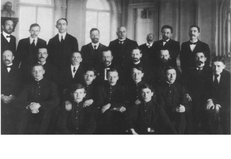 Повседневную одежду учеников Синодального училища составляли черные суконные брюки и китель со стоячим, обшитым малиновым кантом воротником. На воротнике с двух сторон была нашита эмблема Синодального училища – арфа с венцом. В этих костюмах ученики выступали и на концертах.
