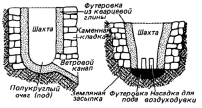 Слева: ветряная печь из каринтийских Рудных гор (2 в.).