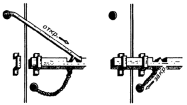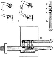 Ключ захватывает «жёлудь» I и слегка приподнимает его путём вращения; колодки отходят в сторону и «жёлуди» ІІ освобождают задвижку