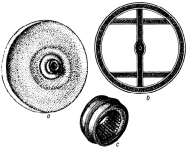 а. дисковое колесо для крытой повозки (глиняная модель с Крымского п-ова, 3 в. до н. э.);