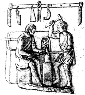 в греч. яз. слово, обозначающее профессию К., сохранилось от др. бронзового века (chalkeus – мастер по меди и бронзе). Время кочующего К. миновало; К. приобрёл круг постоянных клиентов. Из-за высокой стоимости обрабатываемого металла к услугам К. обращались сравнительно редко. Поэтому они были заинтересованы в развитии городских центров, где не было бы недостатка в заказчиках. Об уважении к К. свидетельствует тот факт что их искусный, хотя и увечный бог Гефест был принят на Олимп. Разностороннее мастерство К. нашло отражение в анекдотах, шутках и легендах. Большинство орудий труда изготовлялось из дерева, потому осн. изделиями К. были ножи, топоры, крючки различных видов, серпы, лемеха и оружие, реже – ободья для колёс, гвозди, иглы, различные орудия труда для ремесленников и рудокопов. Работа с кузнечными мехами и у горна требовала разделения труда. К. имел подмастерьев и учеников. Его мастерская была полна различных инструментов. Нередко он изготовлял не только грубые изделия, но и украшения из бронзы и серебра. В Риме социальный статус К. в осн. не изменился. Только в обозначении профессии стало доминировать слово «железо» (faber ferrarius – мастер по железу). К кон. республиканского периода и во времена Империи у К. появились торговые лавки, где они выставляли свои товары на продажу, поскольку уже не работали исключительно по заказам отдельных клиентов. Кроме того, усилилась дифференциация К., которые стали работать с разными металлами и пр. конкретным видам изделий.
