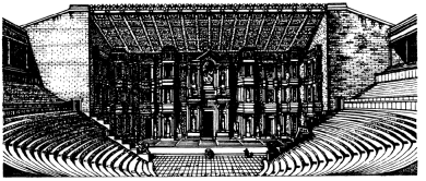 (греч. место для зрелищ, зрелище). Начиная с кон. 6 в. до н. э. в Афинах ежегодно ставились трагедии, комедии и сатировские драмы. Подобные представления были известны и в других частях Греции. В их основе лежали культовые обряды, совершавшиеся во время праздников в честь бога Диониса. Со временем эти театрализованные представления стали неотъемлемой частью государств. праздников, вначале только праздника Великих Дионисий (в марте), а затем – начиная со 2-й пол. 5 в. до н. э. праздника Леней (в январе). По жребию определялся порядок показа пяти комедий в течение первого дня праздника и трёх тетралогий, каждая из которых состояла из трёх трагедий и одной сатировской драмы, в течение трёх последующих дней. Выбором постановок занимались городские власти. Они предоставляли в распоряжение поэта актёров и хорега, который организовывал и оплачивал постановку. Постановщиком являлся сам поэт. После окончания соревнования судьи называли лучшие постановки и вручали призы. Публика на подобных зрелищах была представлена всеми социальными слоями общества; правда, возможно, что замужним женщинам запрещалось присутствовать во время представления комедий. Бедняки получали от властей деньги на вход. Самым старым Т. в Афинах считается Т. Диониса под открытым небом на юго-вост. склоне Акрополя. Здание Т. и места для зрителей были деревянными и сооружались только на время представлений. В 4 в. до н. э. Т. Диониса был построен из камня, но позже его архитектурный облик неоднократно менялся (от Т. Диониса сохранились лишь развалины). Т. Диониса служил образцом для всех греч. Т. Он состоял из орхестры (orchestra), круглой площадки, на которой выступали танцоры, актёры и хор. зрительного зала и здания скены. Орхестра располагалась в центре Т.. а в сер. орхестры был установлен алтарь Диониса (thymele). Две трети орхестры были окружены зри тельным залом theatron, koilon). Ряды для зрителей были расположены один над другим по склону горы. Зрительный зал горизонтально разделялся двумя проходами на три яруса, а вертикально делился многочисл. проходами на т. н. клинья. Первые ряды (prohedria) предназначались влиятельным и уважаемым лицам. Т. Диониса вмещал 14.000–17.000 зрителей. Зрительный зал оделялся от орхестры проходом и небольшим рвом с водой. На противоположной к зрительному залу стороне орхестры располагалась скена (shene), сценич. постройка с комнатами для переодевания актёров и хранения реквизита Крылья скены составляли параскении (paraskenia) между которыми перед скеной выступали актёры. Выступали они на площадке, которая первоначально находилась на уровне земли и только в эпоху эллинизма приподнимается над землёй и получает название «проскений» (proskenion). Проскений и орхестра соединялись между собой ступеньками. С каждой стороны Т. имелся широкий проход, парод (parodos) между параскенией и боковой стеной зрительного зала, через который можно было попасть во внутр. помещения. Выступления хоров проходили на орхестре. Занавеса в греч. Т. не было. Костюмы актёров соответствовали характеру постановок: для трагедий были типичны длинные цветные костюмы с дорогой отделкой, маски, высокие причёски, высокие сапоги на толстой кожаной подошве – котурны. Для комедий были характерны маски, короткие костюмы, нередко надевался и кожаный фалл, а накладные животы, зады и горбы придавали телу гротесковые формы.