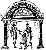 Слева: вправление смещённого позвонка или позвонков путём механического вытяжения. Справа: вправление плечевого вывиха (иллюстрация из комментария Аполлония Китонского, 1 в. до н. э., К. трактату Гиппократа «О вправлении суставов», дошедшего до нас в одной из византийских рукописей)