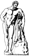 мраморная статуя отдыхающего Геракла, хранящаяся в Неаполе. Происходит из собрания Фарнезе. Представляет собой копию, сделанную Гликоном из Афин со статуи работы Лисиппа.