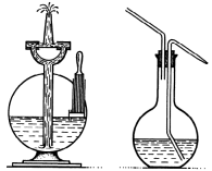 Слева: вдуваемый воздух гонит воду из сосуда.