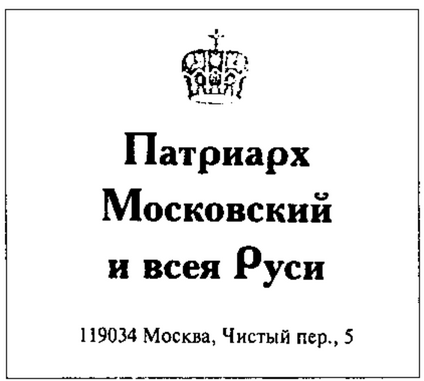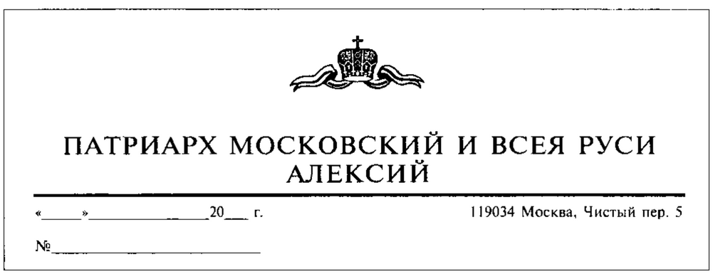 Обычно бланк начинается с указания на юрисдикционную принадлежность религиозной организации. Для канонических подразделений и учреждений Русской Православной Церкви таким указанием будут слова: «Русская Православная Церковь» (разумеется, нельзя использовать сокращение РПЦ). К сожалению, в настоящее время одних этих слов недостаточно, поскольку имеются различные раскольнические организации, самочинно усваивающие себе это наименование; по этой причине после названия «Русская Православная Церковь» необходимо добавлять слова: «Московский Патриархат» (при указании юрисдикционной принадлежности можно ограничиться этими двумя словами, поскольку «Московский Патриархат» – другое официальное наименование Русской Православной Церкви).