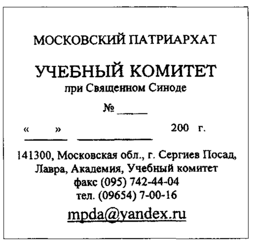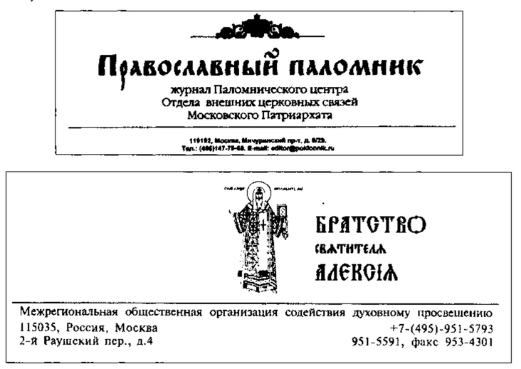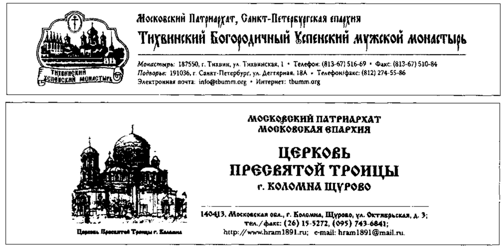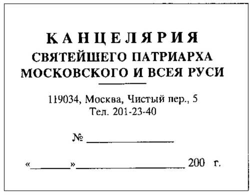 Ниже приведены примеры бланков различных учреждений и подразделений Русской Православной Церкви.