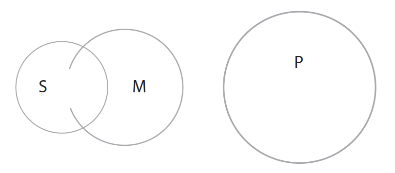 Если мы обратим внимание на термин P, то окажется, что в большей посылке как сказуемое обще-утвердительного суждения он не распределён, между тем в заключении как сказуемое обще-отрицательного суждения он распределён. Это противоречит правилу 4, а следовательно, такое сочетание невозможно. Рассмотрим далее, какой вид может принять это сочетание по фигуре 2:
