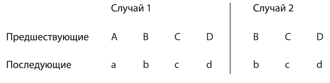 Таким образом, когда мы определяем причинную связь по методу, называемому методом согласия, или сходства, то мы сравниваем между собой различные случаи, в которых изучаемое явление имеет место, выделяя в них части предшествующие и последующие.