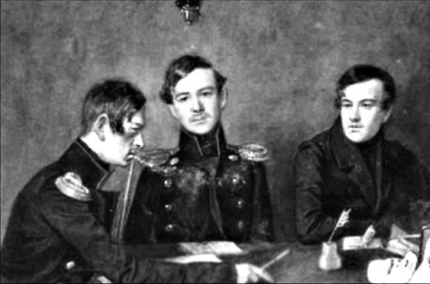 Слева старший, Андрей269, курит трубку, в центре – средний, Григорий, справа, в партикулярном платье, Александр. Желая посвятить себя литературе, Александр в январе 1846 г. вышел из полка и поступил в канцелярию Военного министерства.