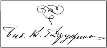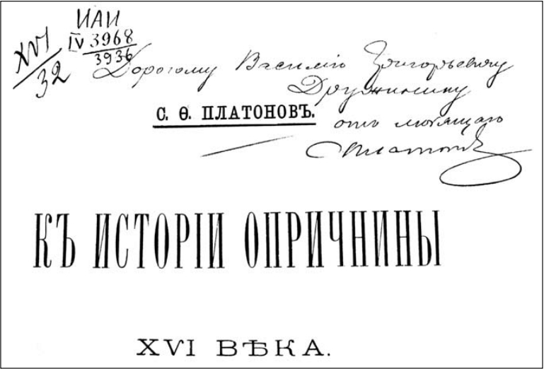 В.А. Адрианов, И.А. Бычков, П.Г. Васенко, А.С. Лаппо-Данилевский, Н.П. Лихачев, X.М. Лопарев, В.В. Майков, Н.П. Павлов-Сильванский, С.Ф. Платонов, С.П. Розанов, В.И. Срезневский, а также В.Н. Бенешевич, Г.С. Габаев, Ю.И. Гессен, П.Н. Милюков, А.В. Орешников, М.А. Островская, П.К. Симони, П.В. Шейн, Е.Ф. Шмурло, П.Е. Щеголев и многие другие. Самые многочисленные автографы принадлежат С.Ф. Платонову, другу и соратнику В.Г. Дружинина по университетскому «кружку молодых историков» (рис. 5).