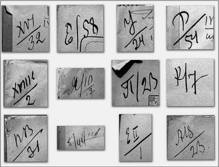 Рис. 4. Надписанные рукой В.Г. Дружинина тематические шифры на брошюрах