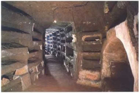 В эту эпоху – эпоху мученичества – мучения не показываются, так же как не описываются они в литургических текстах. Показывается не само мучение, а как ответ на него то отношение, которое должно быть к нему. Отсюда широкое распространение в росписях катакомб таких тем, как, например, Даниил во рву львином, мученица Фекла и др.