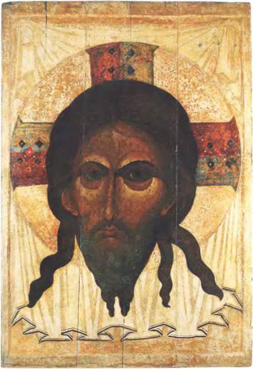 Иконы Нерукотворного Спаса были, вероятно, многочисленны в Византии начиная с VI в.; они особенно распространились после перенесения иконы из Эдессы в Константинополь в 944 г. Однако лучшие иконы этого типа, которые нам известны, русского происхождения. Одна из древнейших сохранившихся икон (XII в.) находится в московском Успенском соборе. Она написана в монументальном стиле, напоминающем фреску154.