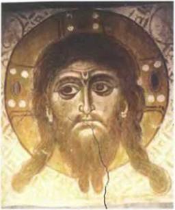 Спас Нерукотворный «наубрусе». Фреска церкви Спаса на Нередице. Новгород. 1199 г.