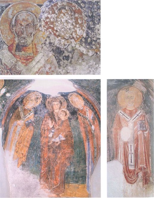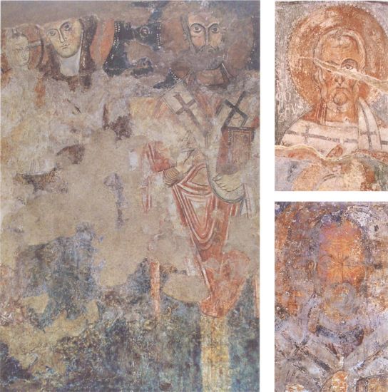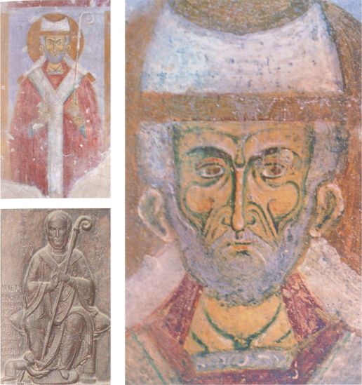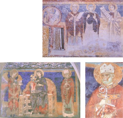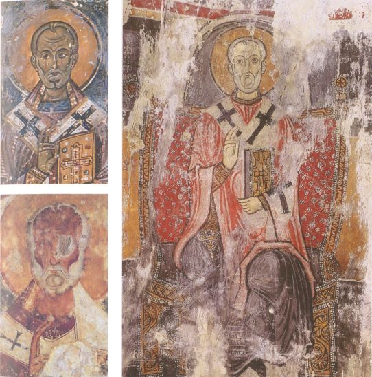 24. 25. Святитель Николай. Фреска в крипте церкви Аннунциата да Минута (Кампанья). Около 1200 г. (справа и вверху слева)