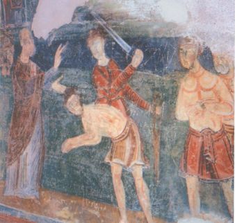 20. Избавление от меча невинно осуждённых. Начало XII в. Фреска крипты Санта Мария ди Олеария близ Майори (Кампанья)