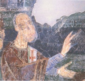 8. Святитель Николай. Фреска в люнете над южным порталом. 1180 г. Церковь Санти Никола е КатальдоЛечче (Апулия)