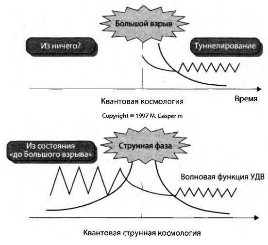 «Так называемый сценарий ‘до большого взрыва’, описанный в этом докладе, должен рассматриваться в вышеупомянутой перспективе как возможный пример, даже просто как игрушечная модель того, как может выглядеть космология, если мы допускаем, что искомое для стандартной модели гравитации и космологии основано на (некоторой особой версии) теории суперструн» (Veneziano & Gasperini 2002, р. 4).