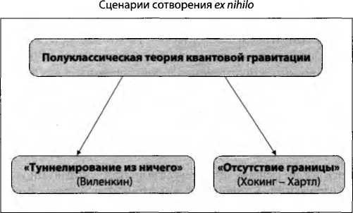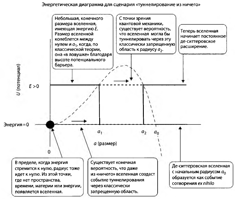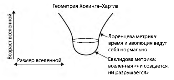Заметим: в вышеприведенном комментарии Виленкин указывает, что геометрию его модели можно понимать исходя из первоначальной евклидовой метрики (которая представляла бы «запрещенную» область энергетической диаграммы; Рис. 3.20).