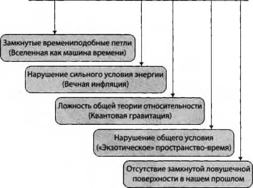 Четвертое и пятое условия этих теорем, а именно общее условие энергии и существование замкнутой ловушечной поверхности в нашем прошлом, легко удовлетворяются.