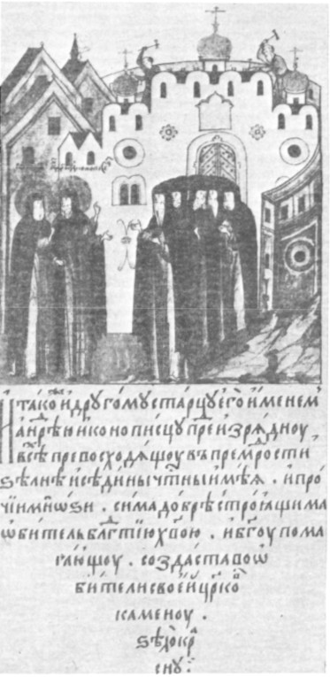 Рис. 1. Встреча Андрея Рублева с игуменом Ефремом в Андроникове монастыре