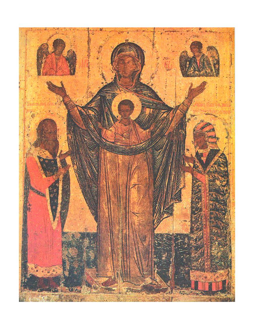 Богоматерь «Великая Панагия» (Ярославская «Оранта»). Икона. Преп. Алипий Печерский