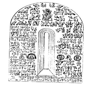 Резьбою из камня были богато украшены, как уже говорилось, владимирские храмы. В особенности интересна эта резьба на Дмитриевском соборе. Композиция повторяется в общих чертах на всех трех стенах храма, в центре фигура святого, сидящего на троне, вокруг его – звери, птицы и травы. По остроумной догадке Н.П. Кондакова, эти композиции являются, так сказать, скульптурною иллюстрацией к широко известному древней Руси стиху о Голубиной книге.