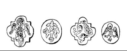 Но наряду с этими узорами, раскопками добыть целый ряд украшений очень древних, нередко хронологически неопределимых эпох, с узорами совершенно иного стиля. Это изображения чудовищ – фантастических существ, полулюдей, полуживотных, нередко причудливо изогнутых и переплетенных друг с другом.