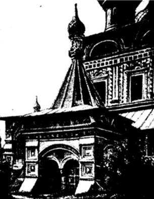 В общем типе этих жилых построек замечается довольно сильное влияние деревянного зодчества. Уступавшему духу времени и создававшему себе каменные палаты, русскому человеку XVII века как будто трудно расстаться с привычками, сложившимися еще в эпоху господства деревянной архитектуры. Он строит любимые древнею Русью крыльца на тех же пузатых колонках, на каких он привык их строить, и кроет эти крыльца опять-таки привычною шатровою крышей. Этажи он старается разделить узорными поясами, потому что на деревянных постройках исстари существовало это деление. При первой же возможности, ему любо устроить террасы-«гульбища», поставить где-нибудь «теремок».