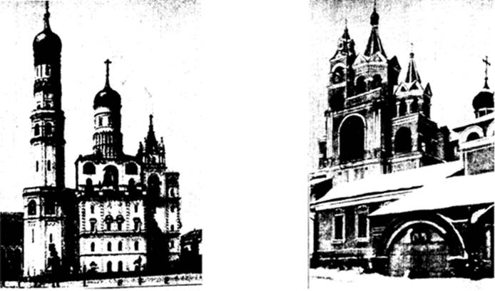 Венцом этих столпообразных колоколен является московский «столп» Ивана Великого, возникший на рубеже XVI и XVII веков, и составляющий с пристроенною к нему Петроком Малым громадною звонницей, одну величавую группу.