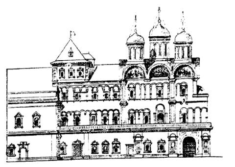По пышности и великолепию отделки Теремной дворец и построенная еще в 1491 г. итальянцами Марком Руфом и Петром Антонием, но впоследствии значительно переделанная Грановитая палата являлись конечно, исключениями.