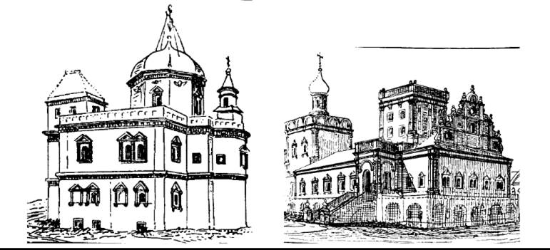 Распространяются и башнеобразные храмы малороссийского типа, послужившие образцом для стиля каменного «русского рококо».