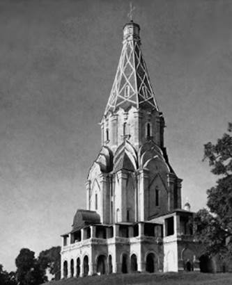 Через тридцать лет русские строители, воспользовавшись новым направлением в зодчестве, указанным строителями Дьяковского и Коломенского храмов, создали своего рода апофеоз шатрового церковного стиля храм Василия Блаженного.