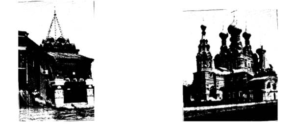 Уносившие далеко ввысь свои пирамидальные кровли, господствующие над всем их окружающим, эти созданные самим народом шатровые храмы одиноко стоят в истории европейской архитектуры. В общих их очертаниях есть что-то родственное с индийскими пагодами напоминающее зодчество древнейших уголков колыбели человечества. Но дальше этой родственности очертаний дело не идет: планировка, обработка фасада детали, – всецело принадлежат русскому народу, выросли и развились на родной почве, вне чужеземных влияний.