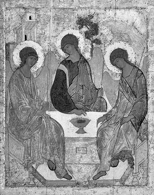 В Троице-Сергиевской лавре хранится, приписываемая кисти Рублева, икона Св. Троицы – один из замечательнейших памятников русской живописи XV века. К сожалению, эта икона закрыта, по русскому обычаю, драгоценною ризой, и потому недоступна для осмотра. Судя по ликам и имеющимся фотографическим снимкам, главная ценность этой иконы заключается не в совершенстве ее внешних художественных форм, а в той наивной и глубокой вере, которая водила рукою инока-художника, и невольно запечатлелась в его произведении.